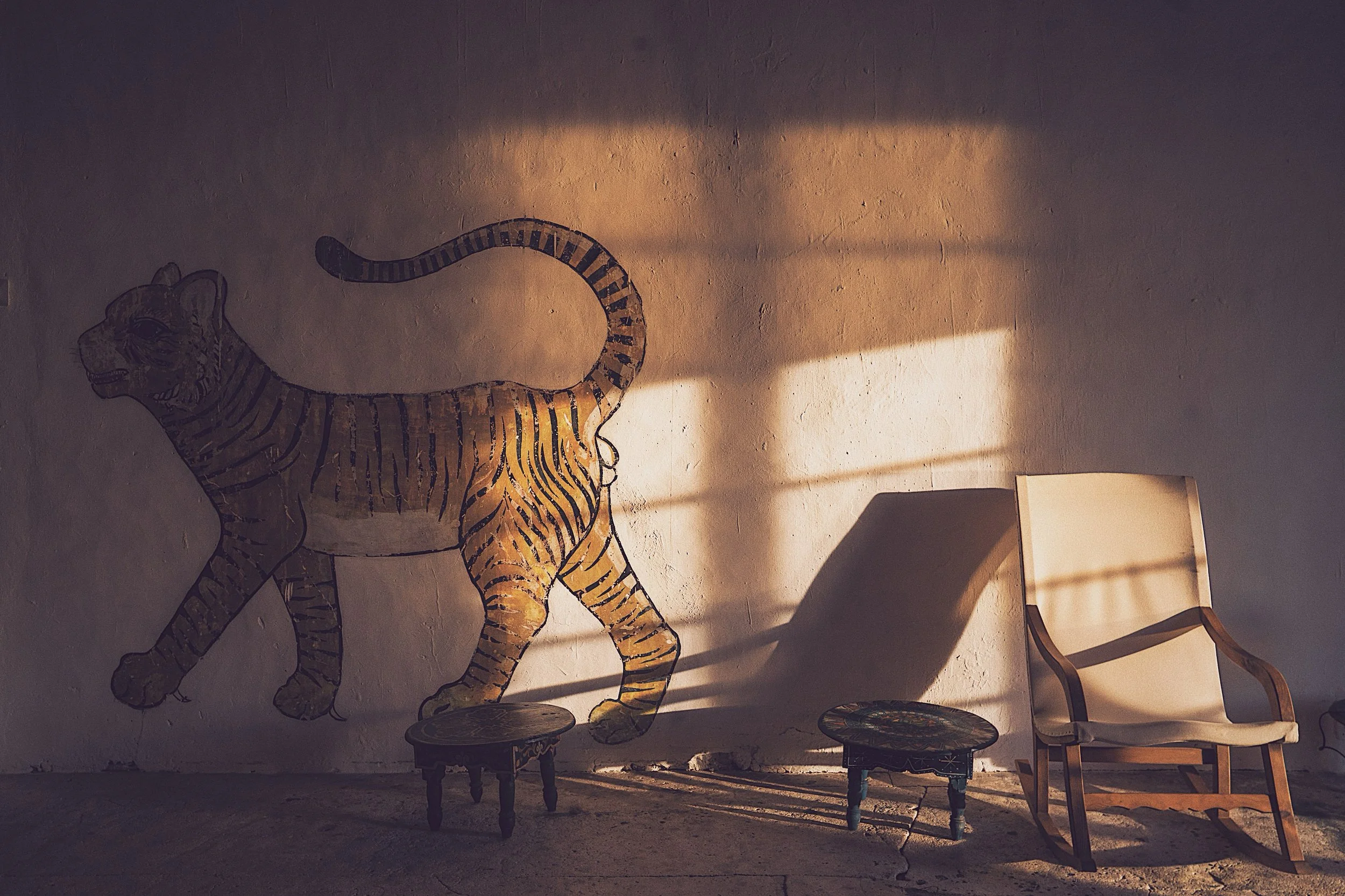 Spacious group room with ocean views for up to four guests with single beds and shared bathroom, complete with the company of Son Rullan's iconic tiger mural. Reserve with friends or meet new ones: this room allows you to book a bed, rather than the whole room, and you will be sharing with 2-3 others.